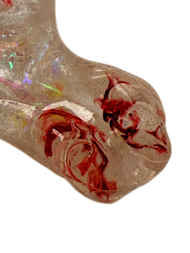 A ghost jumped out of a horror movie and became a unique dog tag... a gory lollipop was the last thing to be expected.